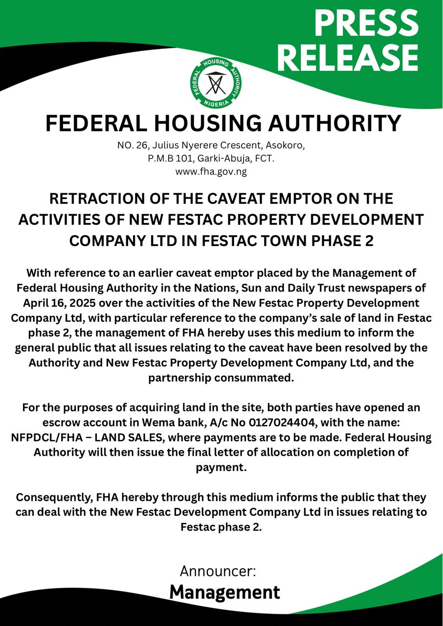 FHA will be performing the Groundbreaking Ceremony of its Renewed Hope Estate in Uyo, Akwa Ibom State, on Thursday 6th November, 2025, by 10am at the Renewed Hope Estate Site, along Airport Road, U... Read More!